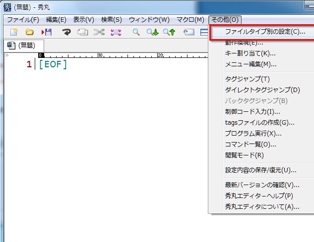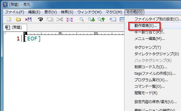 - 秀丸を起動し、メニューバーの[その他]から動作環境を選択する。