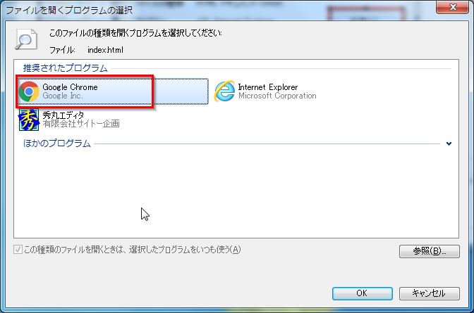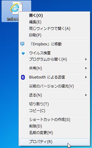 - 拡張子が、.html であるファイルの上で右クリック、プロパティを選択